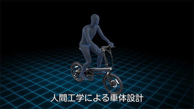 本体は人間工学に基づきいた独自の設計です。身体の重心線と車体の重力方向が平行になり、常に正しい走行姿勢で走行できます。