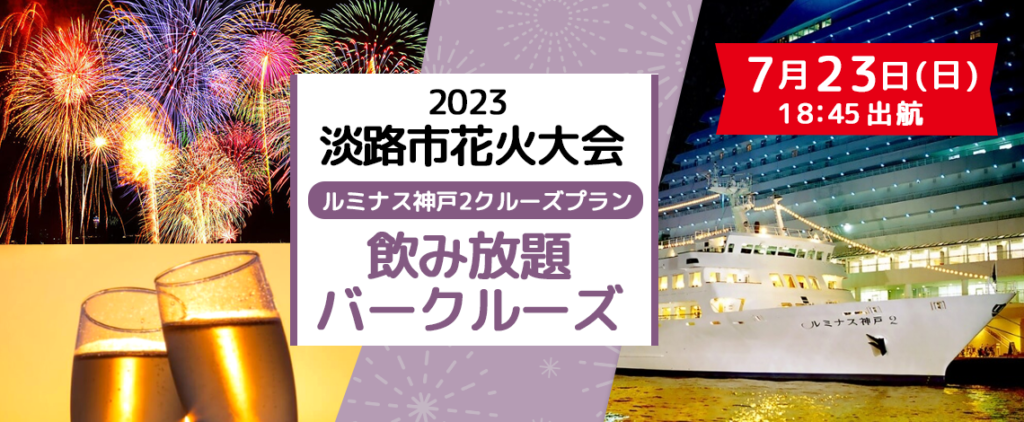 淡路市花火大会2023 ルミナス神戸2クルーズプラン船上で花火を見よう!!選べる2プラン¥6,200-~ あなたはどのプランにされますか?