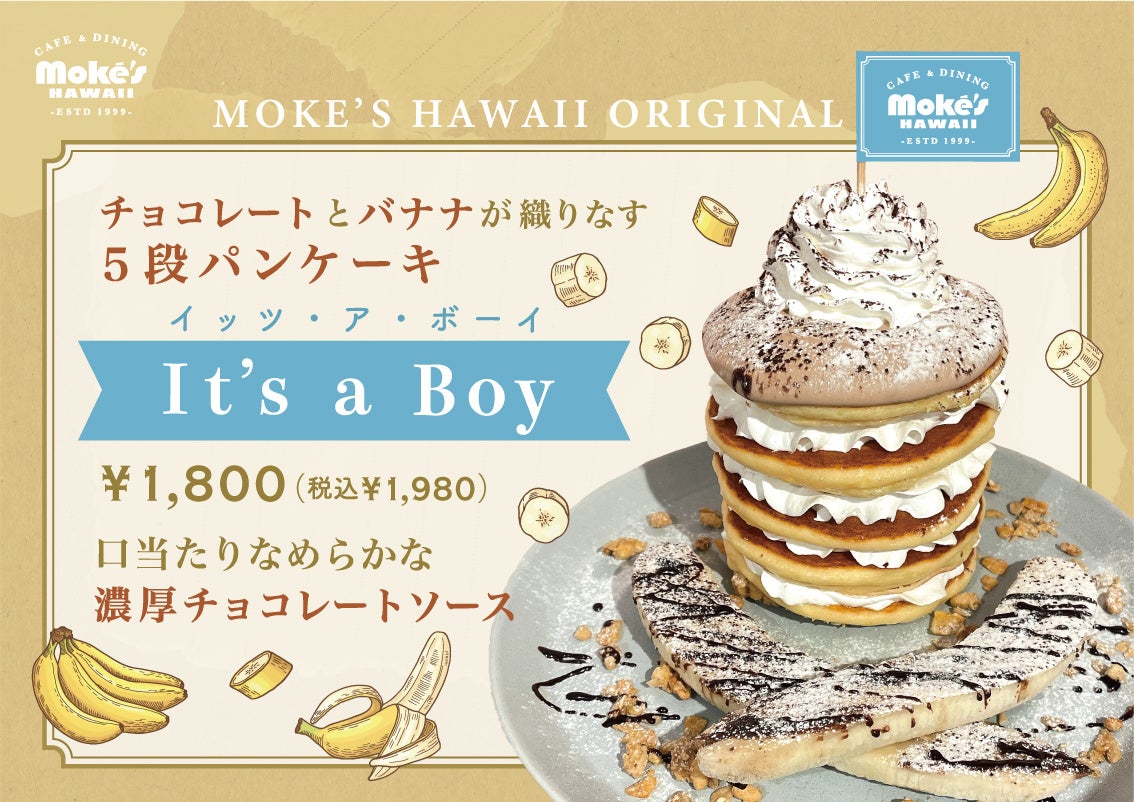 濃厚チョコレートソースとバナナが織りなす5段パンケーキ「It’s a boy」モケスハワイ江ノ島店にて発売開始