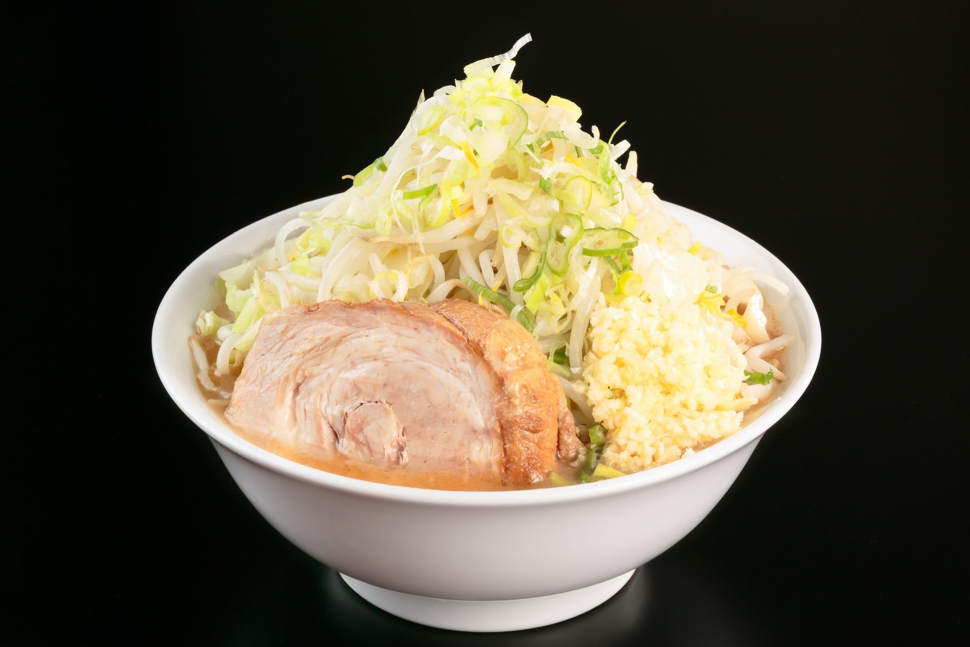 千葉県で一際目立つ大行列を作り出す大人気店「ちばから」。二郎インスパイア系の中でも最高峰の人気を誇り、もはや “ちばから系” と呼べるほどラーメンとしてその個性を確立しています。凶暴な濃厚さがら「油っこさ」「獣っぽさ」などを一切感じさせないクリーミーなスープ。まろやかな口当たりで、丁寧に抽出された豚の旨味、そしてキレのある醤油ダレが引き立ち、一口目から衝撃の美味さが口いっぱいに広がります。濃厚かつ繊細なスープに合わせるのは、モチモチとしたコシの強さが自慢の自家製極太麺。ちばから流にブレンドした小麦を使用しており、口に入れた瞬間小麦の風味が広がり、力強いもっちりとした食感が楽しめます。さらに、ちばからの代名詞 “神豚” と呼ばれる、ほろほろプルプルなのチャーシューを贅沢にトッピング。まさに神食感でクセになる味わいです。上質でクリーミーなスープに、モチモチ食感の極太麺、ホロホロの神豚とまさに3種の神器が揃った「ちばから」の二郎系ラーメンをぜひお楽しみください。