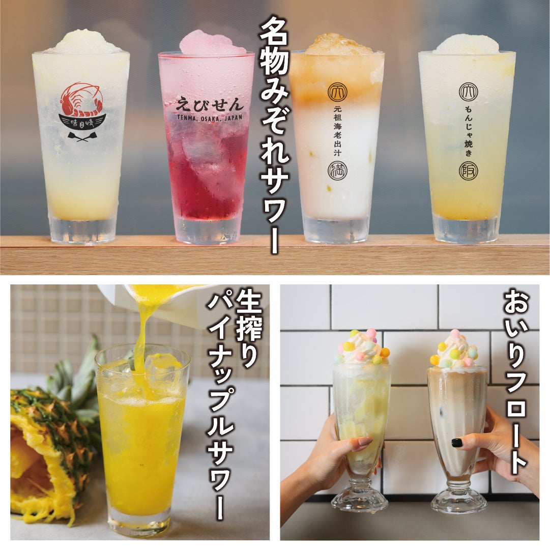 たっぷりのフローズンと自家製レモンシロップの「純生レモンサワー」をはじめ「こだまのバイスサワー」や「大人のスパイシージンジャーサワー」が名物。また、パイナップルを大胆に半分使用した「えびせんのジャンボ生搾りパイナップルサワー」をラインナップ。食事利用やお酒が飲めない方向けにソフトドリンクも充実させ、おいりソフトクリームをトッピングした「コーラフロート」や「キャラメル焙じ茶ラテフロート」なども取り揃えております。