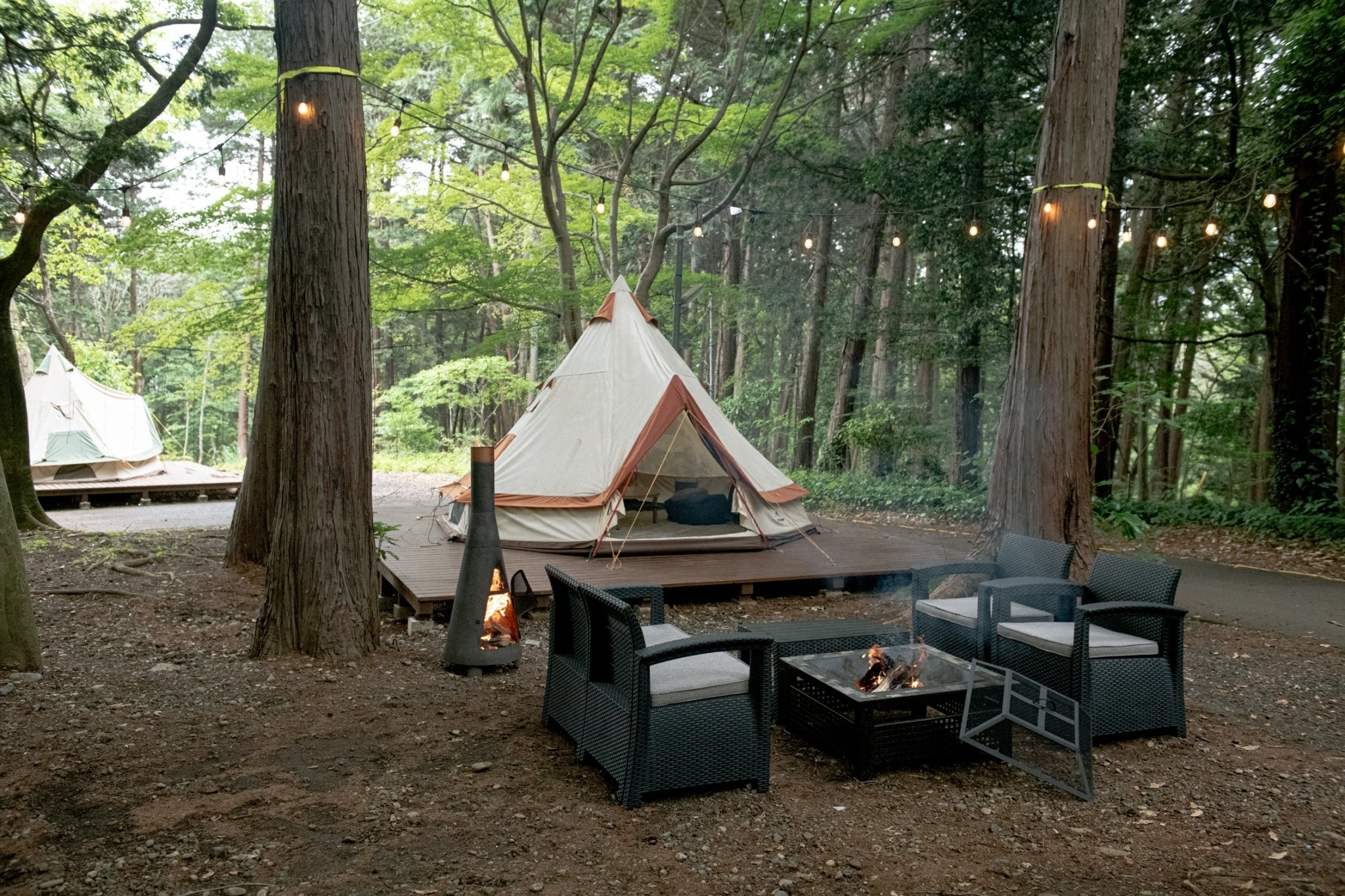 手ぶらでBBQ、テント、焚火が楽しめる施設。