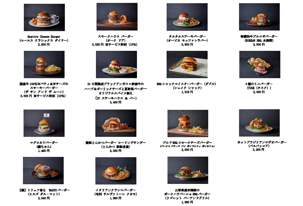 | 「六本木グルメバーガーグランプリ 2023」 参加バーガー 一覧 |