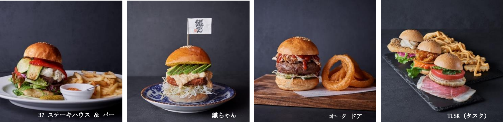 オレンジの輪切りのローストやキャロットラペ、鮮やかな赤色が目を引くビーツ、そしてシズル感溢れるトロけるチーズなど、ビジュアルでも目を引くバーガーも取り揃えました。お酒から音楽やアートまで新しい文化を発信するTUSK(タスク)からは、お酒や音楽のお供としても楽しめる「3種のミニバーガー」が登場します。都会のスカイラインを一望できるザ サン アンド ザ ムーンでは、鮮やかなビーツとキャベツのシュークルートが華を添える「国産牛100%Wパティ&Wチーズのスモーキーバーガー」がエントリー。今しか食べられない、期間限定の華やかなグルメバーガーをぜひお召し上がりください。