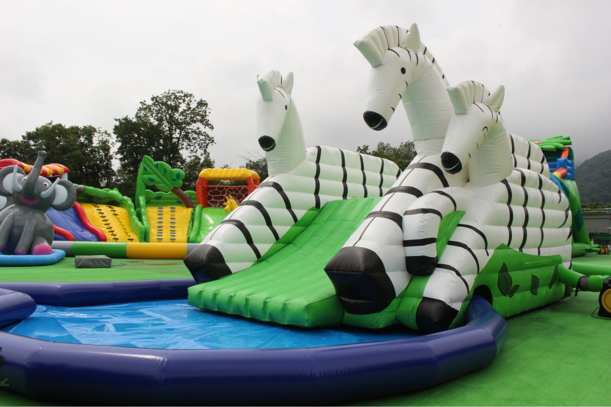 2匹のジャンボシマウマの間を滑る抜けるスライダーです。