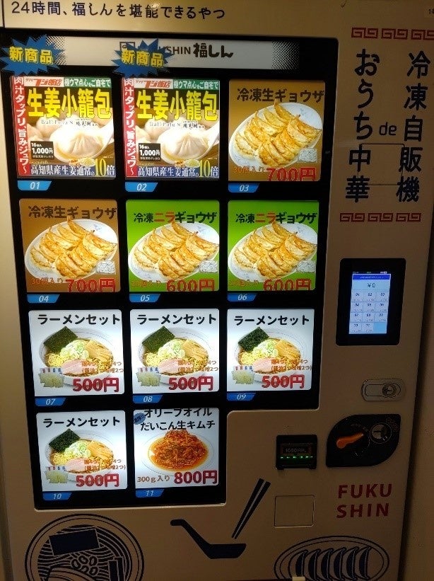 女性のハートもがっちりつかむ「生姜小籠包」は、24時間いつでも気軽に買える冷凍自動販売機でも販売中。「福しん」では、特製黒酢タレ付き「生姜小籠包」(16個、税込1000円)で提供。お持ち帰りにピッタリで、ご家庭でも堪能できることから大好評です。