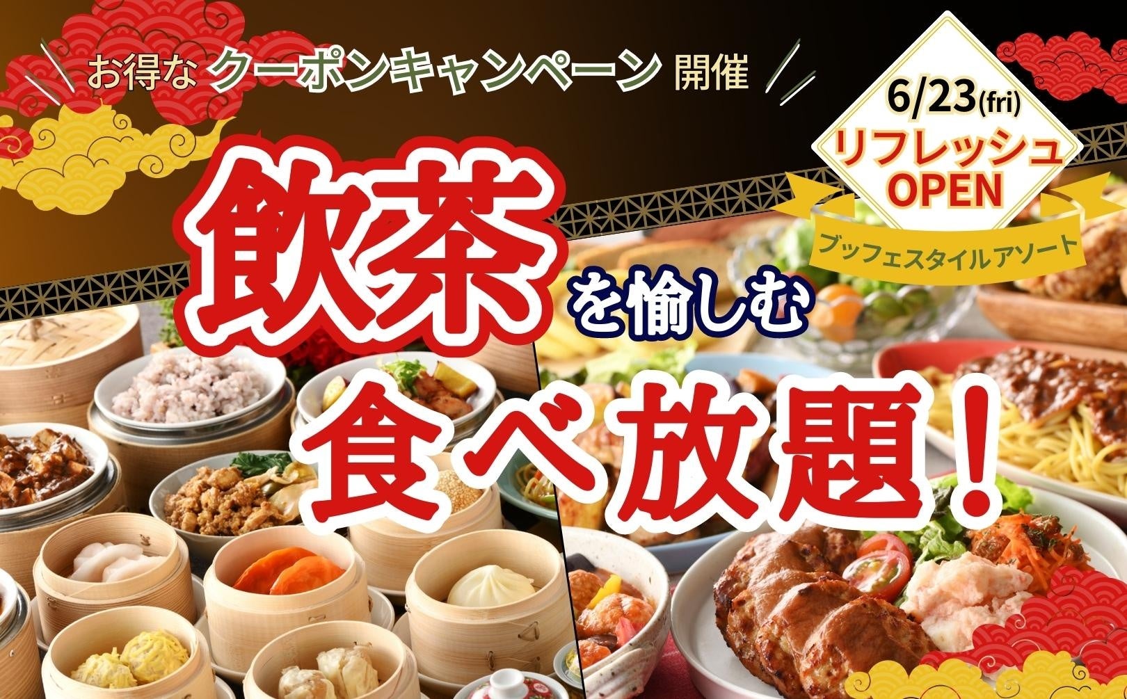 2023年7月2日(日)迄の期間限定にて、おすすめメニューの『飲茶』が味わえるスタンダードコース以上が、リーズナブルにご利用いただける『HP限定!クーポンキャンペーン』を同時開催!