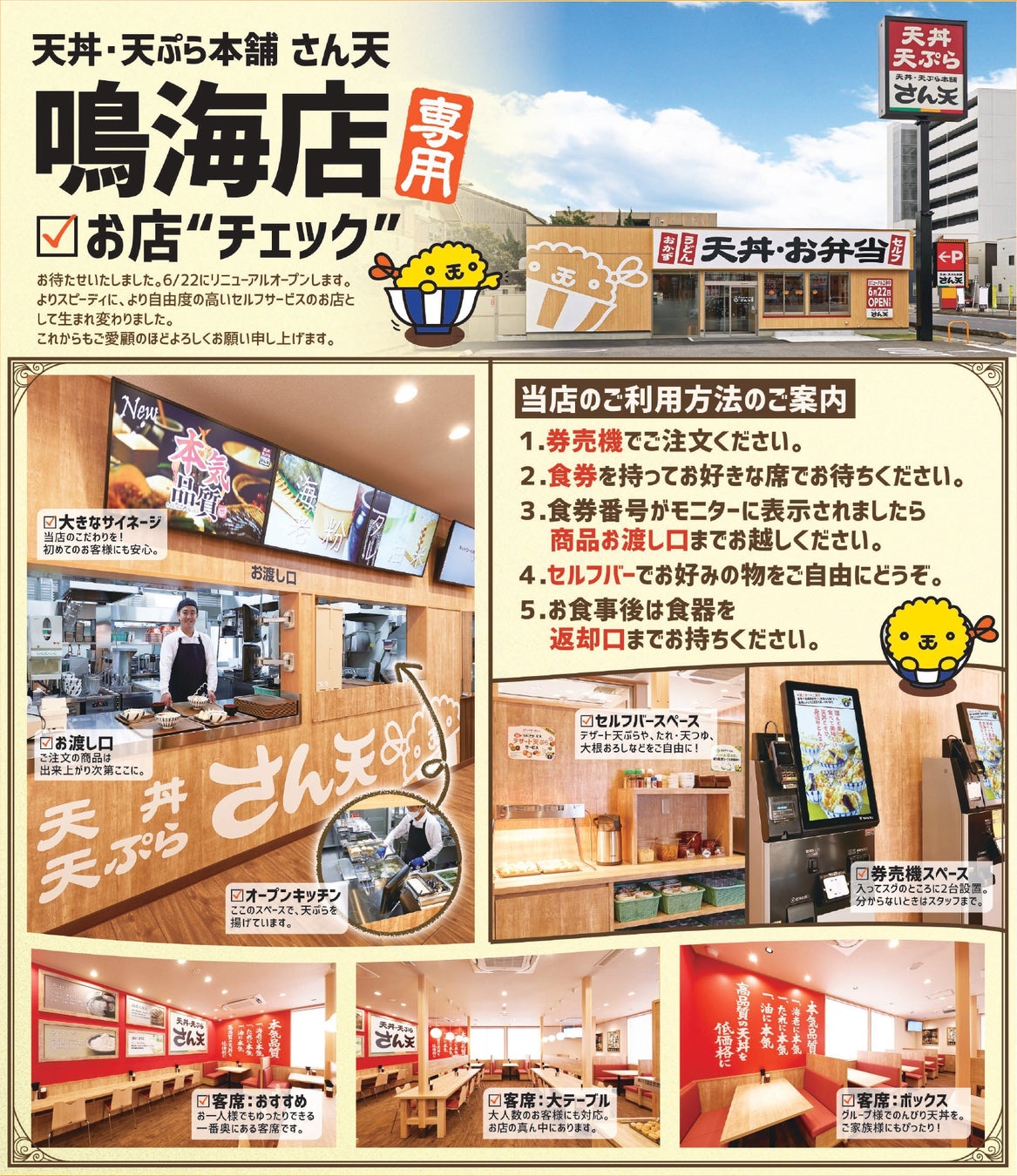 2023年6月22(木)にリニューアルオープン「天丼・天ぷら本舗 さん天 鳴海店」のチェックポイント