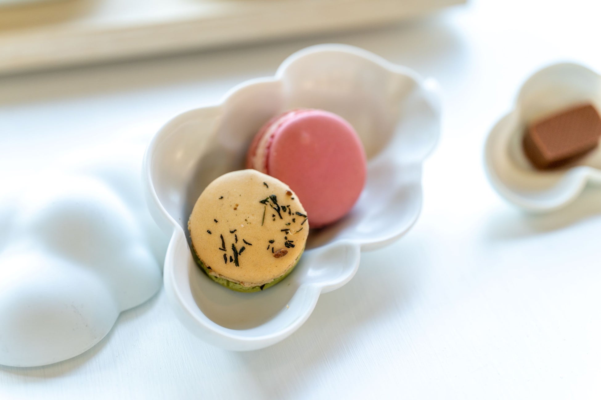 『Made in ピエール・エルメ』を惹きつけた食材は、さわやかな苦みを持つ「嬉野茶」。 嬉野煎茶・嬉野ほうじ茶・嬉野玄米茶を用いたマカロンや、嬉野煎茶、ほうじ茶を使用した2種のチョコレートケーキなど、この土地ならではのメニューを開発しました。旬のスペシャルな食材を取り入れたアフタヌーンティーもご用意。肥前吉田焼「224porcelain」によるオリジナルの白磁で提供いたします。