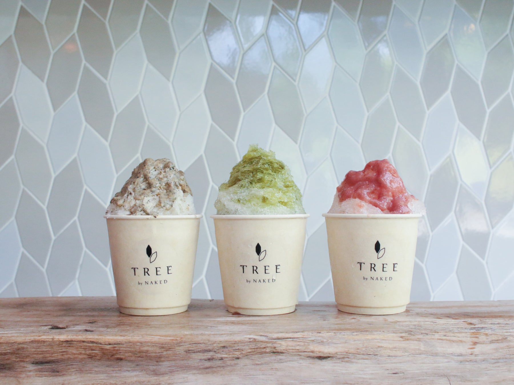 TREE京風かき氷(抹茶味・ほうじ茶味・あまおういちご味)各660円(税込)