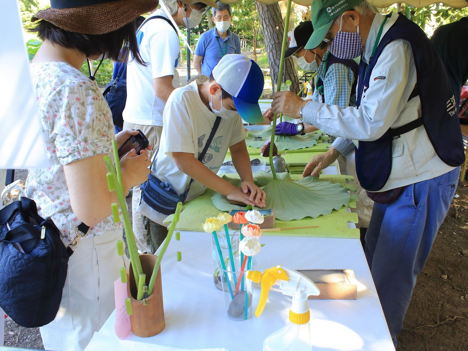 - 体験型イベント『蓮の葉を使った団扇づくり』