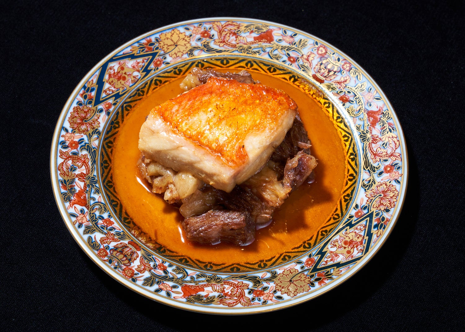 旨味が強く、あっさりしつつもクセになる味わいが特徴の、鹿児島黒牛のテール出汁と金目鯛の煮付け。ほんのり甘くなめらかでジューシーな金目鯛の煮付けとテール出汁を合わせることにより、より一層奥深い味わいをお楽しみいただけます。