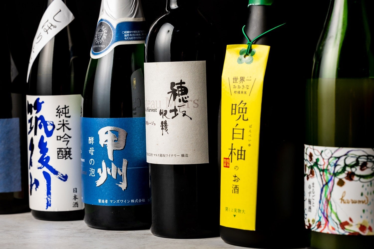福岡県の白糸酒造や飛龍酒造、鹿児島県の神川酒造など、料理長が自ら酒蔵に足を運び厳選した日本酒や焼酎を各種ご用意しております。コース料理と合わせてぜひお楽しみください。