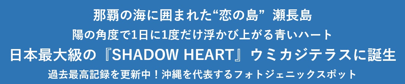 那覇の海に囲まれた“恋の島” 瀬長島陽の角度で1日に1度だけ浮かび上がる青いハート日本最大級の『SHADOW HEART』ウミカジテラスに誕生!