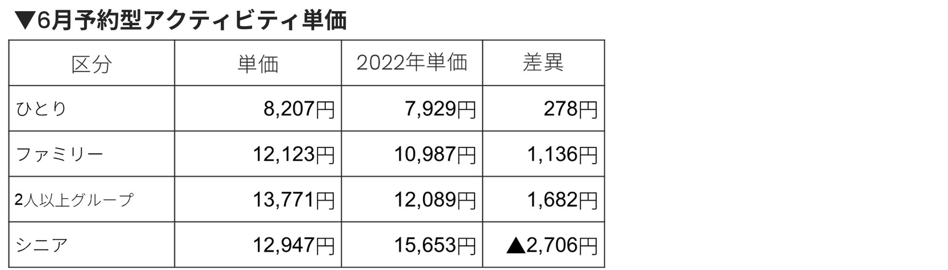 - 昨年に比べ上昇傾向、特に予約型アクティビティに顕著に表れている。物価高騰の波が、体験費用の値上げに影響しているものと推測。