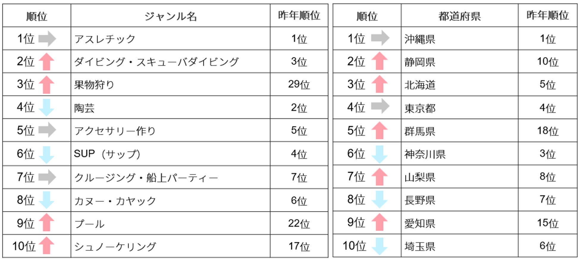 - 人気のアクティビティ体験先1位は沖縄県、2位は北海道を抑えて長野県がランクイン。自然豊かな地域でのアクティビティ体験ニーズが顕著に。
