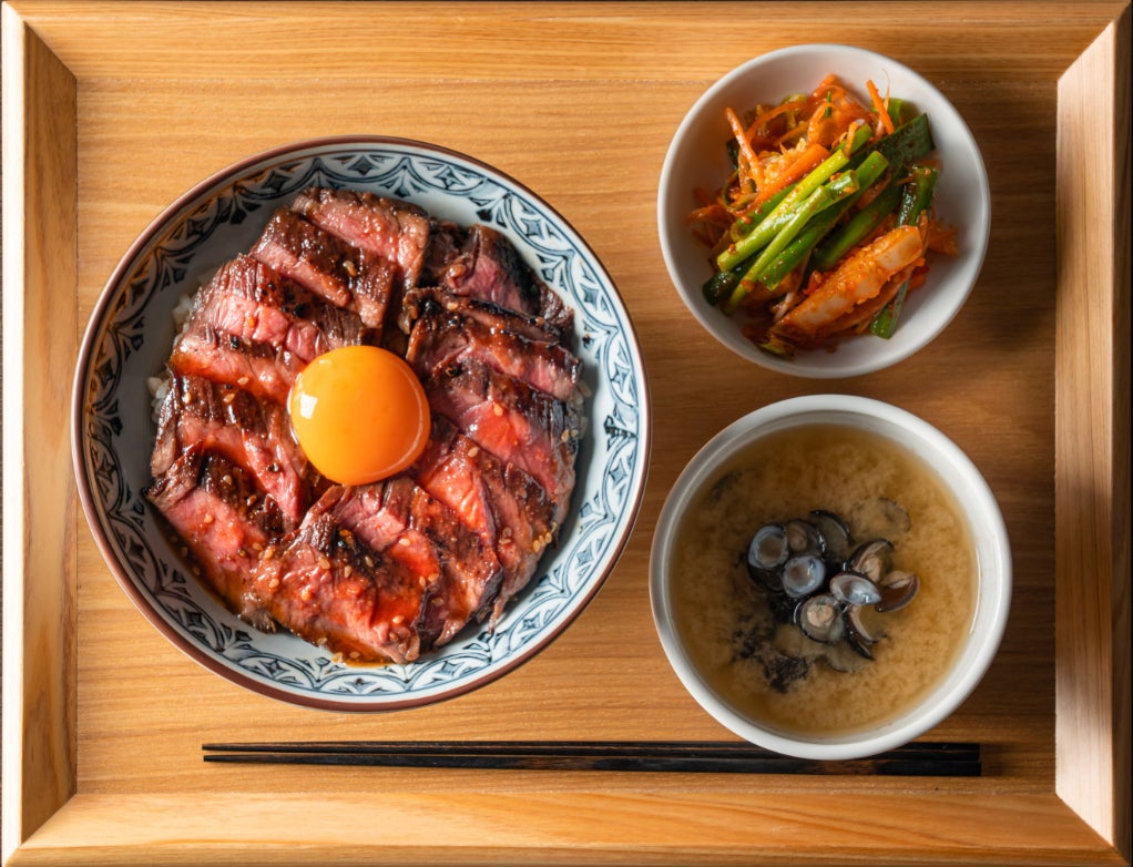 また、丼は全て、自家製の浅漬けキムチとしじみ汁が付いた、満足感の高い定食スタイルで提供しています。