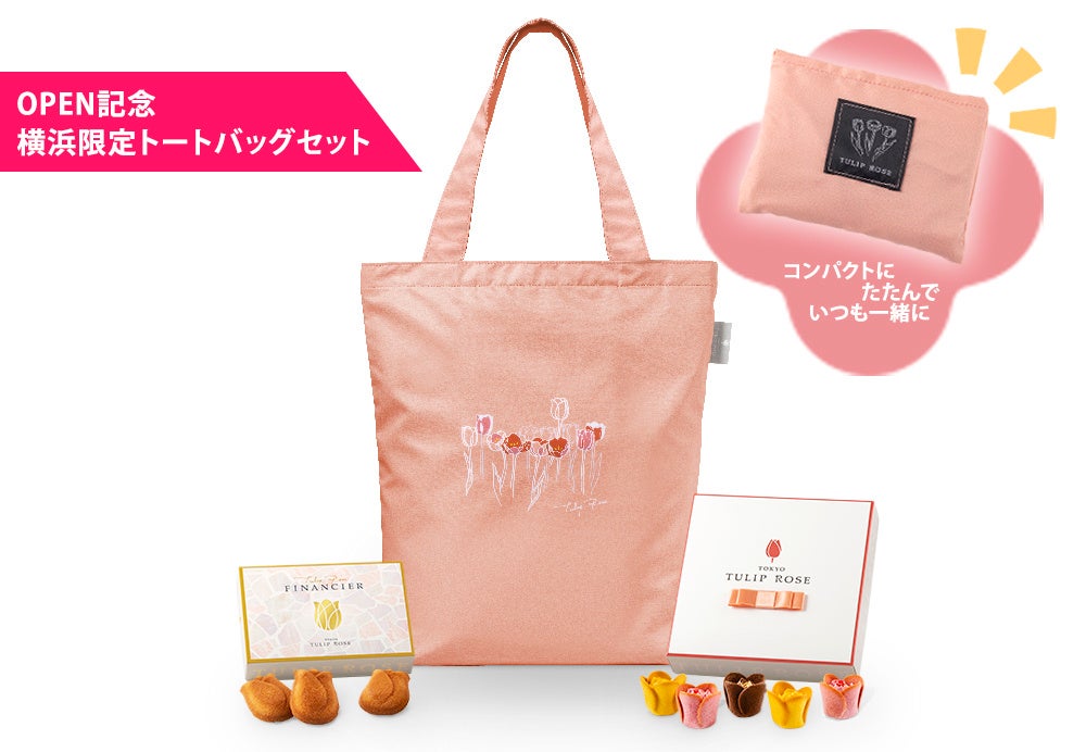 チューリップの中にローズが咲く代表作『チューリップローズ』と、まるで“黄金色のチューリップ”みたいな『チューリップローズ フィナンシェ』が、可愛すぎるオリジナルトートバッグとセットになった<そごう横浜店限定>のスペシャルセットの販売が決定!オトナ可愛いサーモンピンクを基調に、上品な線画でチューリップを描きました。折りたたんでも可愛いので、ちょっとおしゃれなエコバッグとしても楽しみたい。カバンにしのばせて、いつでも一緒にお出かけしたくなっちゃう可愛さです。1週間限定登場・各日なくなり次第終了となりますので、気になる方はお早めにチェックして!