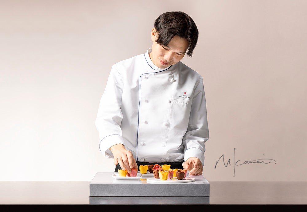 1986年生まれ。専修大学経営学部在学中に東京製菓学校にてお菓子作りを学ぶ。ハイアットリージェンシー東京にて皿盛りのデセールやプチガトーはもちろん、ショコラやウェディングの華やかな細工菓子まで、パティシエとしてあらゆる洋菓子の技術を磨いた。2013年に渡仏。パリにて、シェフ・パティシエをつとめる。2017年に帰国後、集大成として「TOKYOチューリップローズ」を手がける。