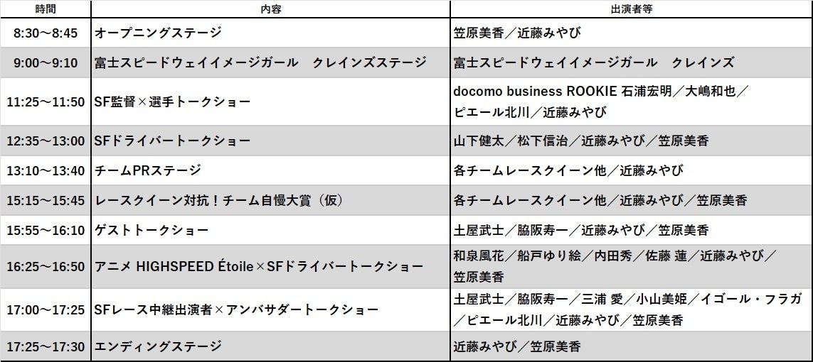 ■ レーシングコース タイムスケジュール(暫定) ※スケジュールは変更する場合があります。