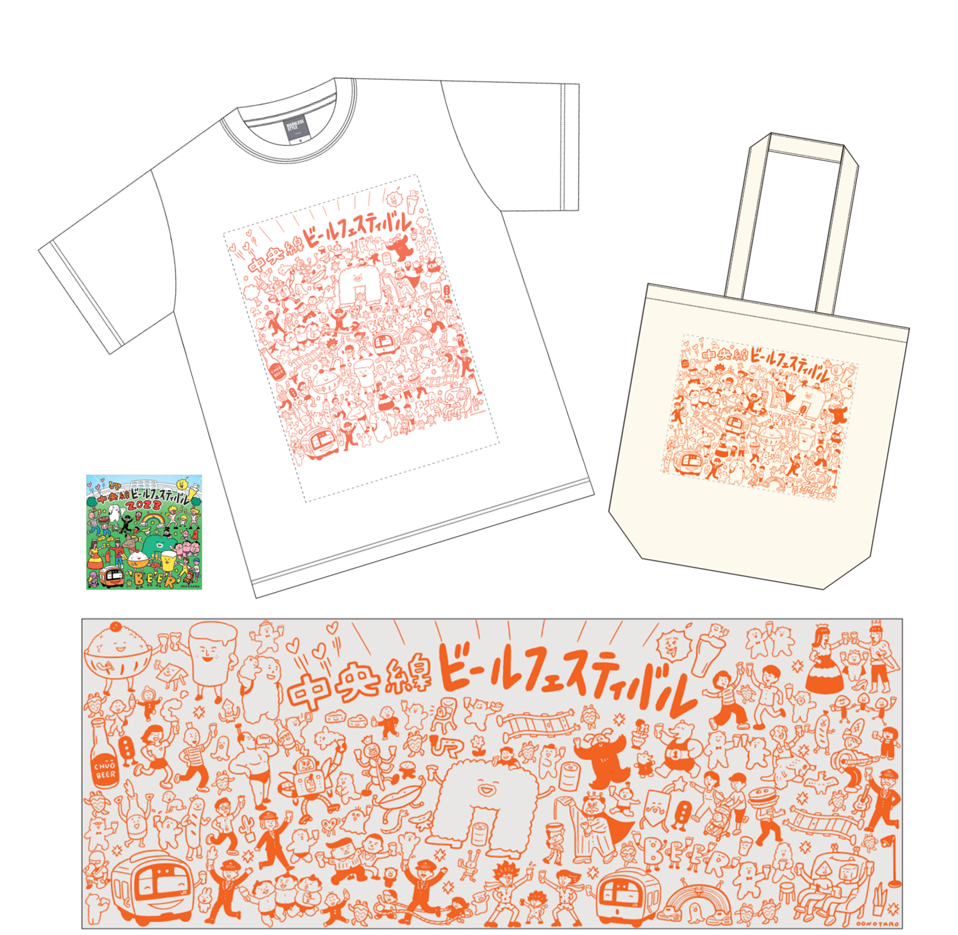 コロナ禍の2021 年に開催のオンラインイベントの時から、メインビジュアルを手掛けてきた「おおのたろう」さんによるイラストをプリントした公式グッズを数量限定で販売。中央線ビールフェスティバルのファンの皆さま必見です!
