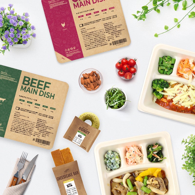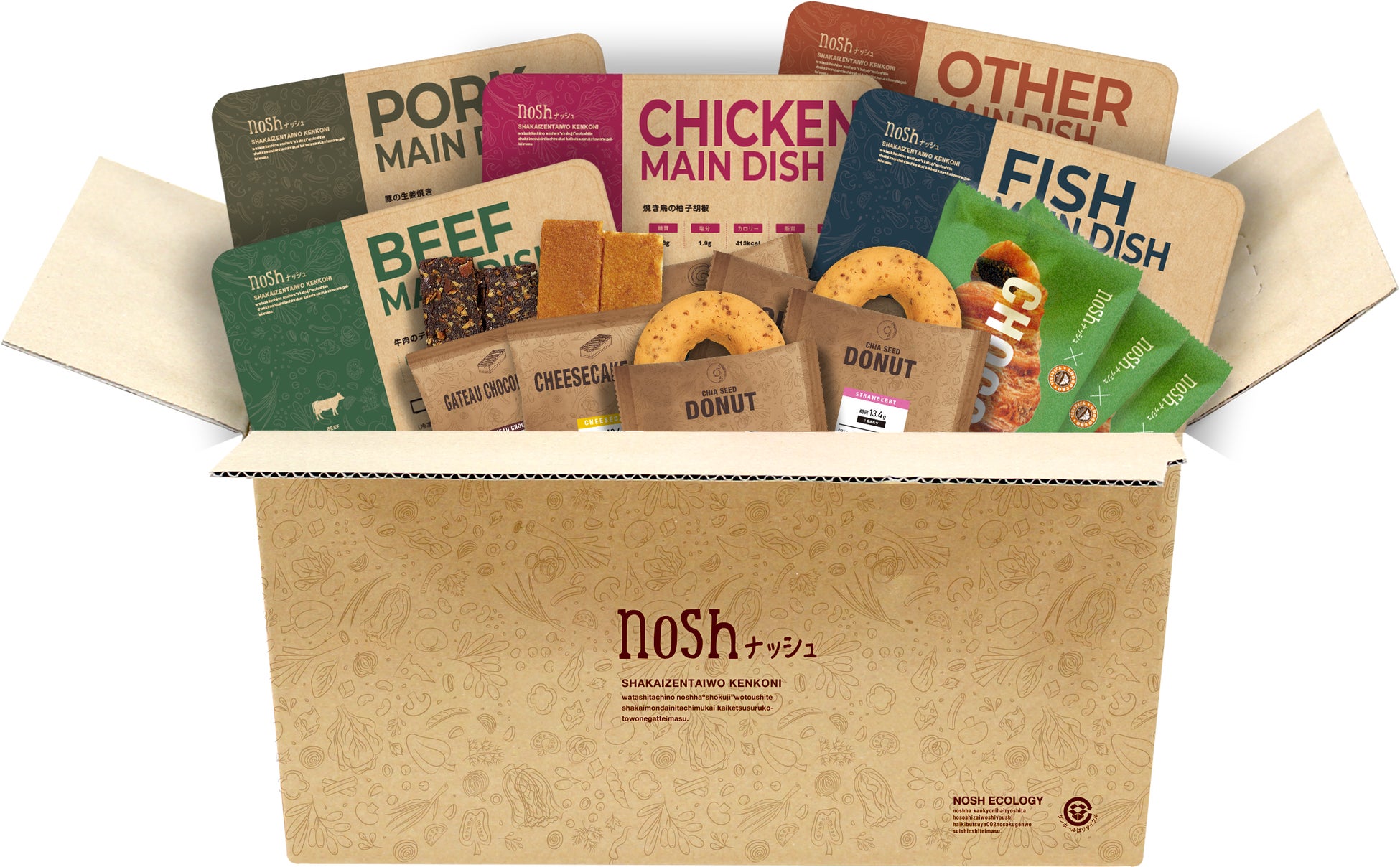 「社会全体を健康に。」を理念とする当社は、商品の企画・製造・販売までを一貫して自社で行っています。 多忙な毎日の中で健康的な食事の準備をすることは簡単ではありません。そうした中で、手軽に栄養管理ができる「nosh」は、自宅に常備される“国民食”となることを目指しています。自社専属シェフと管理栄養士が開発したすべての商品は糖質30g以下、塩分2.5g以下の栄養価を満たし、常時60品以上の商品は継続的にご満足いただけるよう、毎週3商品の新アイテムを投入しています。
