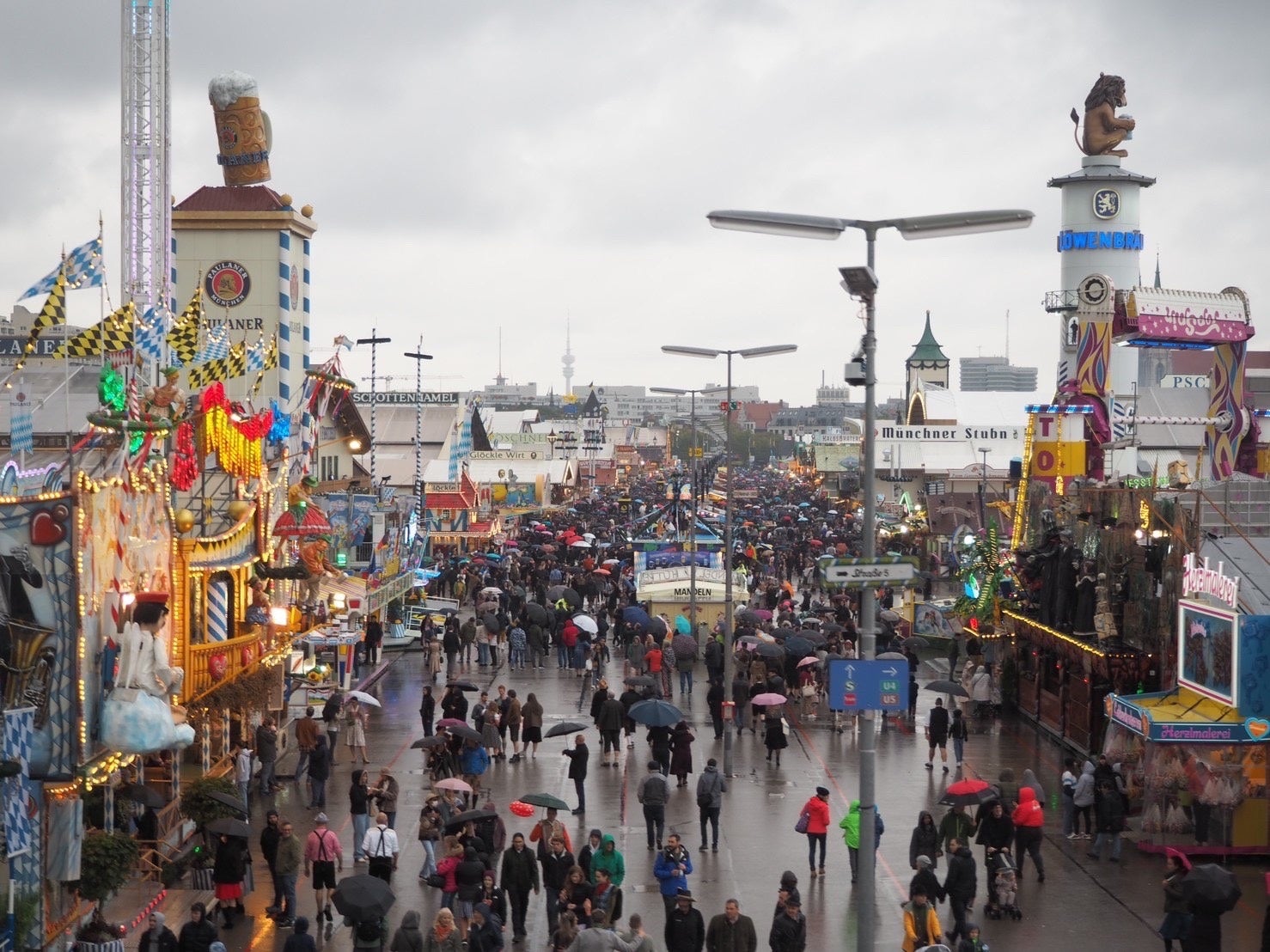 巨大なビールテントをはじめ、小さな屋台、観覧車やジェットコースターといったアトラクションなど 1 日では回りきれない広大な会場(東京ドーム約 9 個分︕)で多くのビールが飲み交わされます。