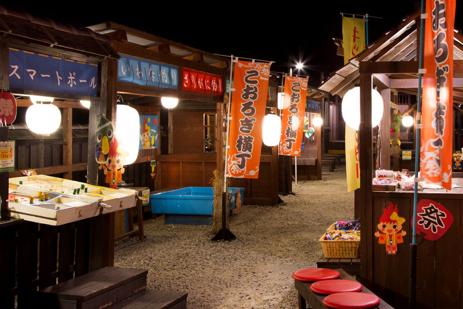 花火セットやラムネ、光るブレスレットの他、縁日遊びに使える600銭、オリジナルの吉祥バス貯金箱などを手に入れて遊びましょう。