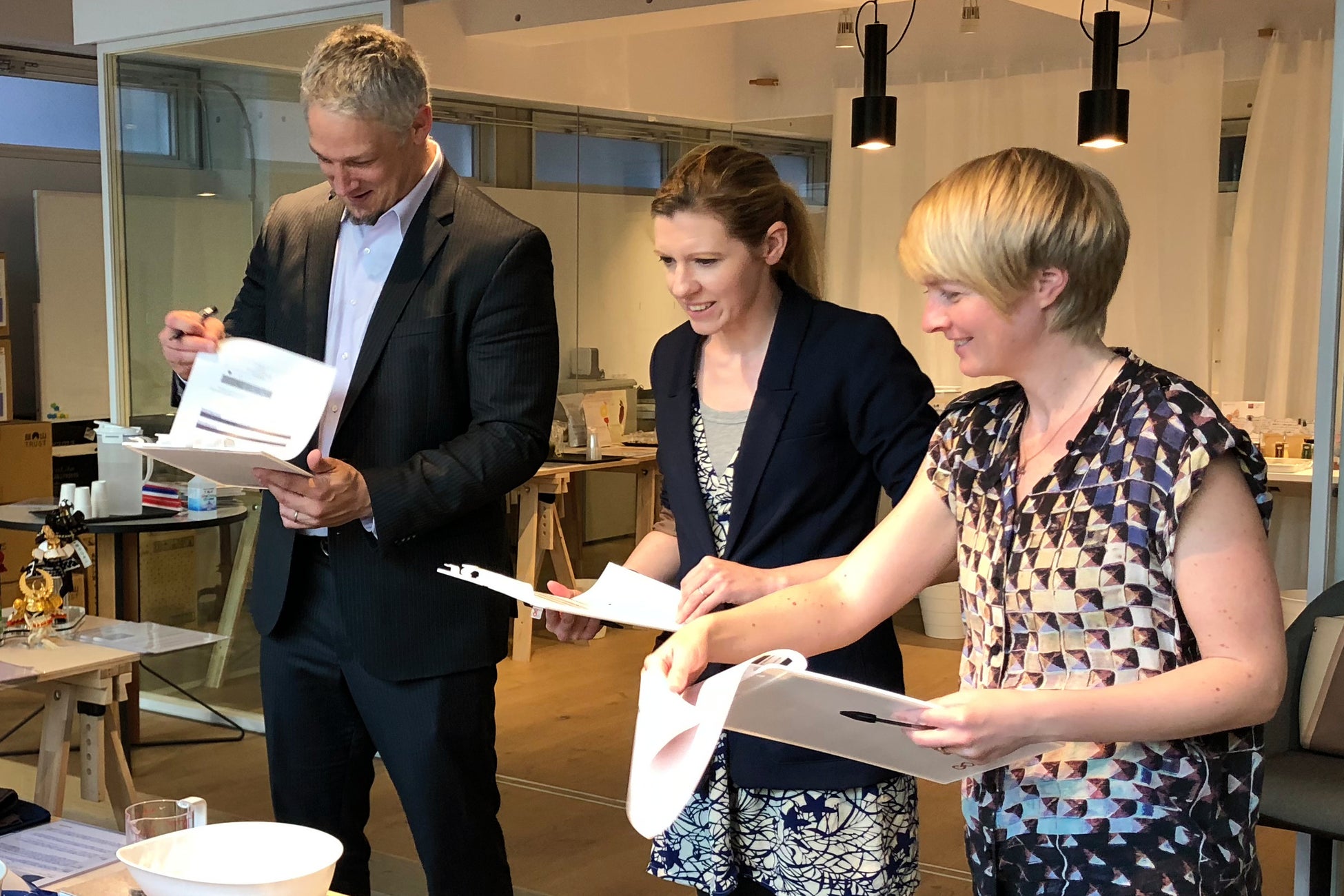 和風ラテ風味のプロテイン、石川県杉水町産⽞⽶麹を贅沢に配合した万能調味料、高機能性野菜の3種が試食可能