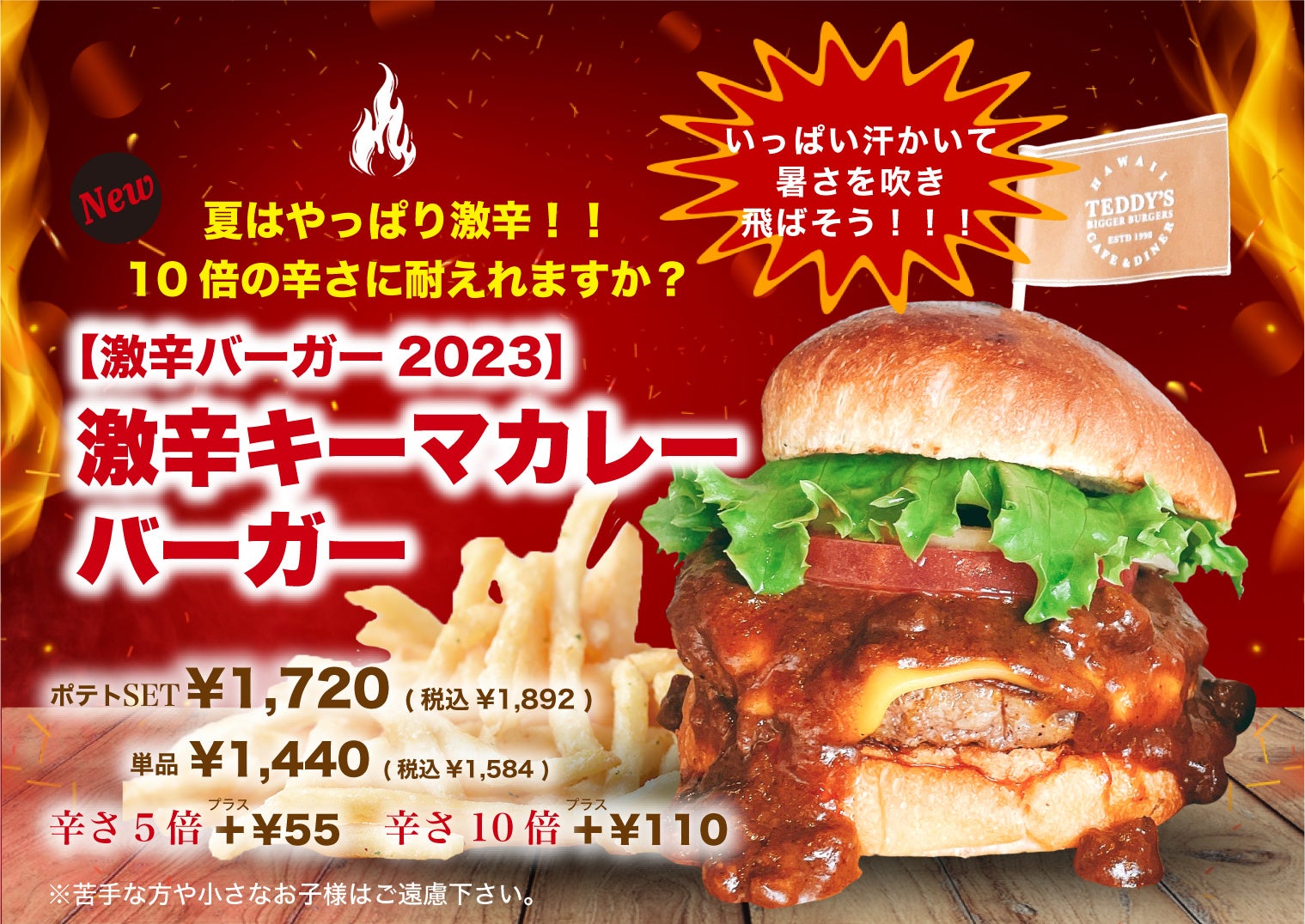 ハワイで”22年連続BESTバーガー賞”を受賞している Teddy’s Bigger Burgers より、夏の「激辛キーマカレーバーガー」が新発売しました。