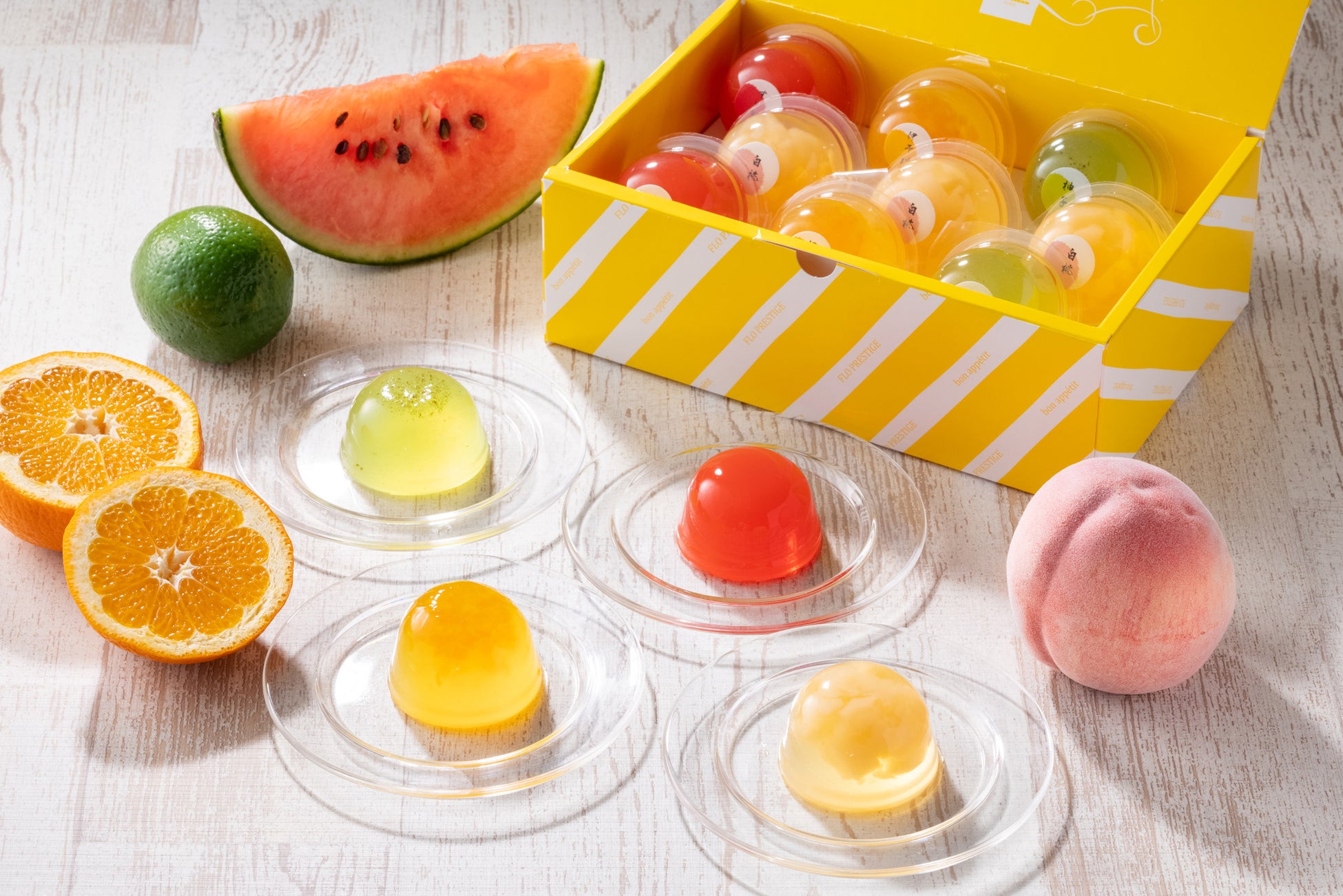 気軽に味わえるフレンチメニューを提供している「FLO PRESTAGE」からサマーギフトシーズンに向け、カラフルでフルーティーなフルーツジュレが登場。カラフルで見た目もかわいく手土産映え間違いなし!国産果実の美味しさ広がる詰め合わせを揃えています。
