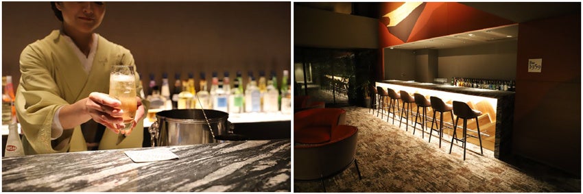 また、Barのカウンターの上には、芦ノ湖と富士山が寄木細工風でデザインされており、箱根らしさを演出しております。名前にある「1959」は、2018年に営業を終えた旧ホテルの開業年です。前身のホテルの開業年をつけることで今まで宿泊いただいた方の想い、働いていた方の思いも受け継いでいきたいと考え、店名といたしました。