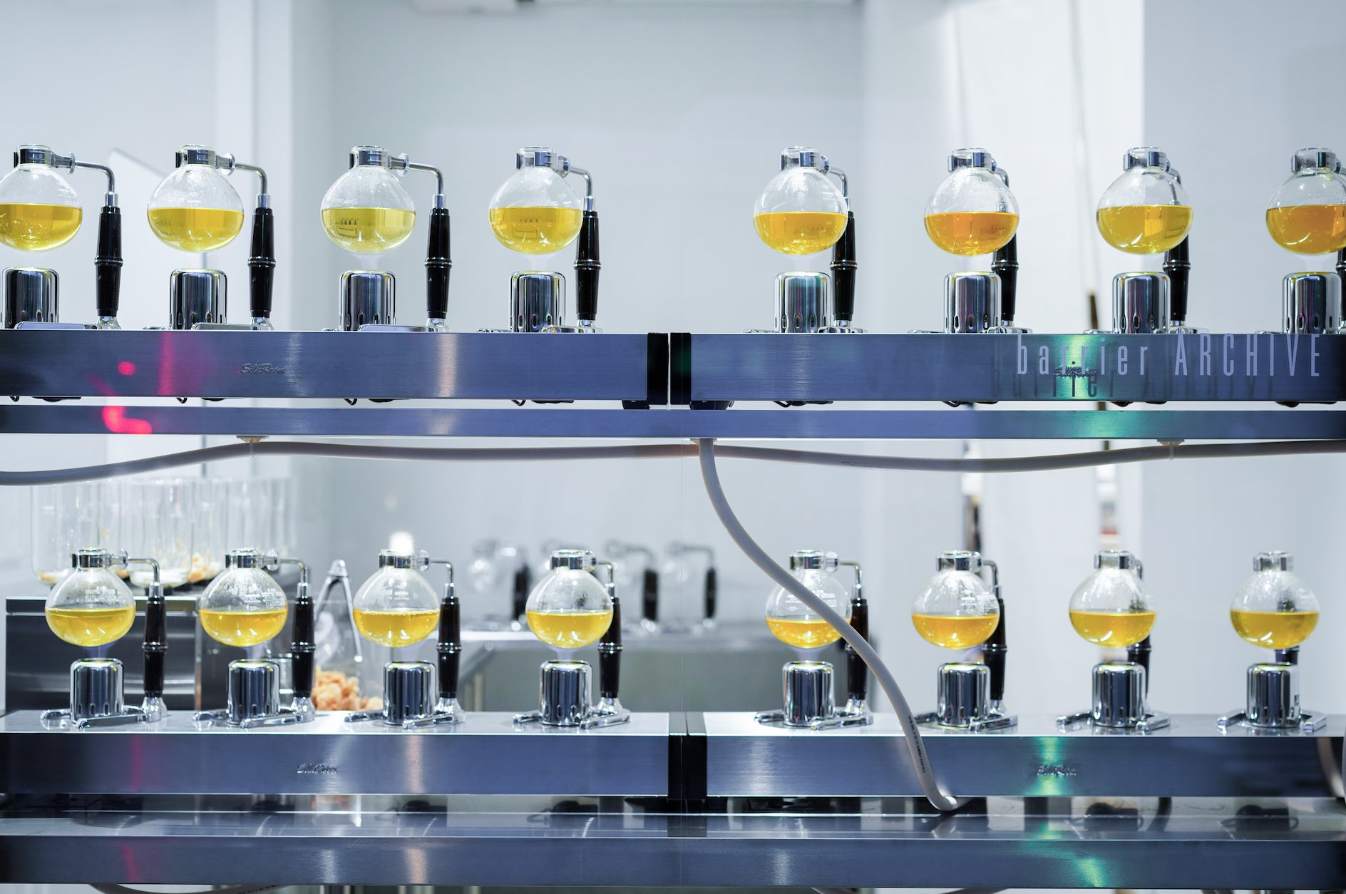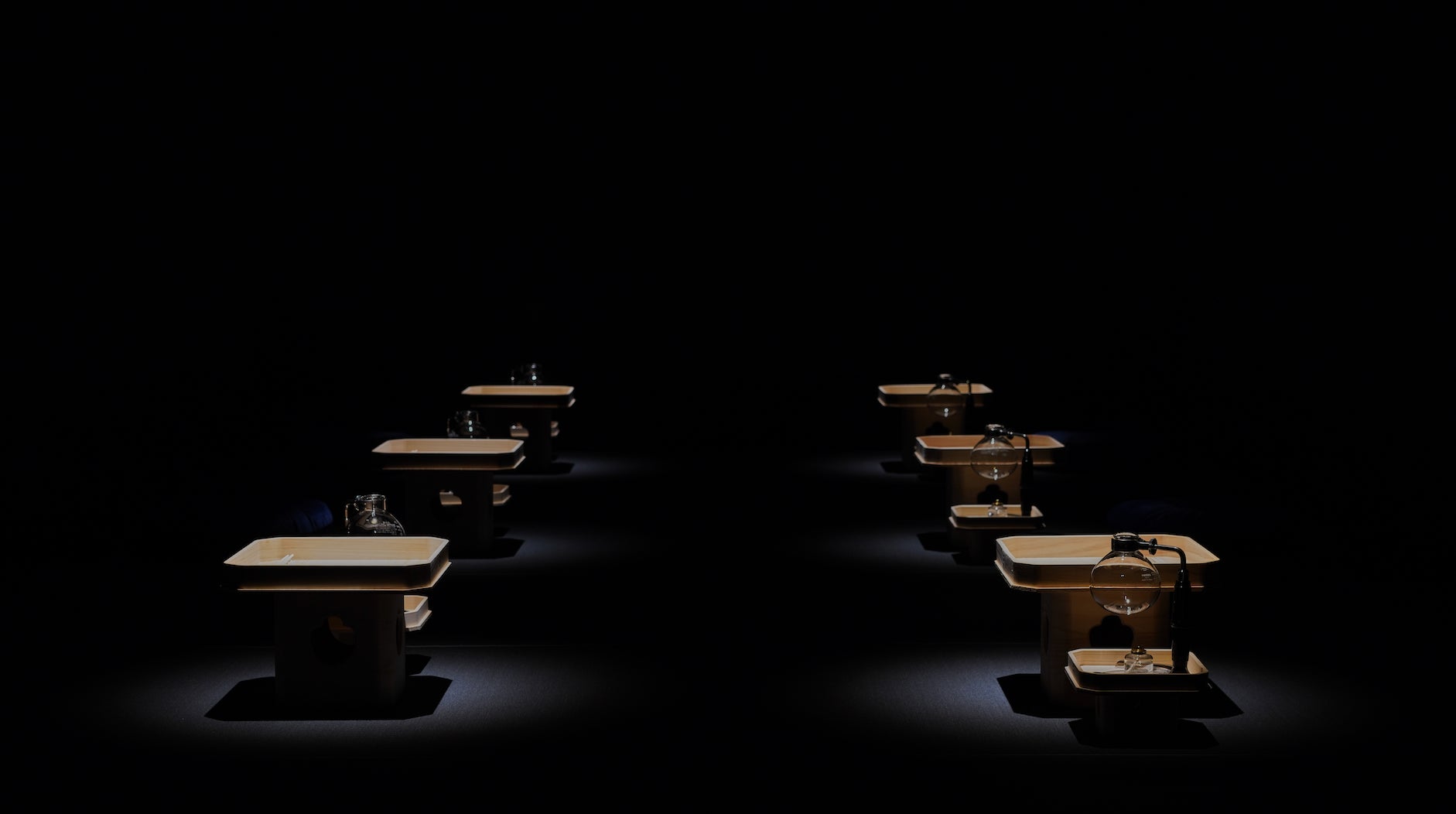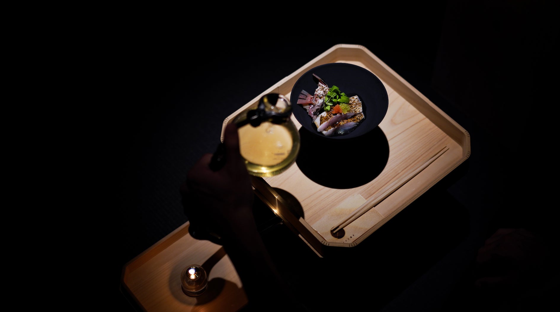 barrierでは、三方(さんぼう)をお膳として利用し、岡持ち(おかもち)に収められた三つのお椀料理に、サイフォンで抽出された一番出汁を注ぎます。これにより、一杯のお出汁がお客様の食体験に奥深さと芳醇さを加えます。barrierは、伝統的な日本料理のエッセンスを守りつつも、現代的なアプローチで新たな魅力を引き出すことを目指しています。漆黒の空間で五感を研ぎ澄ませて、出汁に合う料理をお楽しみください。