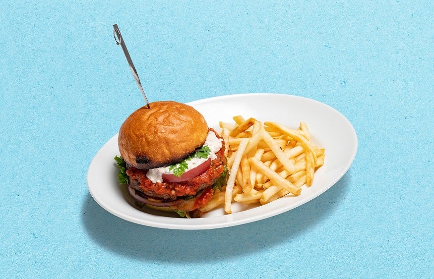 国産牛100%の肉々しいパティにハラペーニョを効かせたピリ辛特製チリソースとシャキッとした野菜がたっぷり!お肉の旨味とチリソースの辛さがクセになる夏にぴったりな一品。
