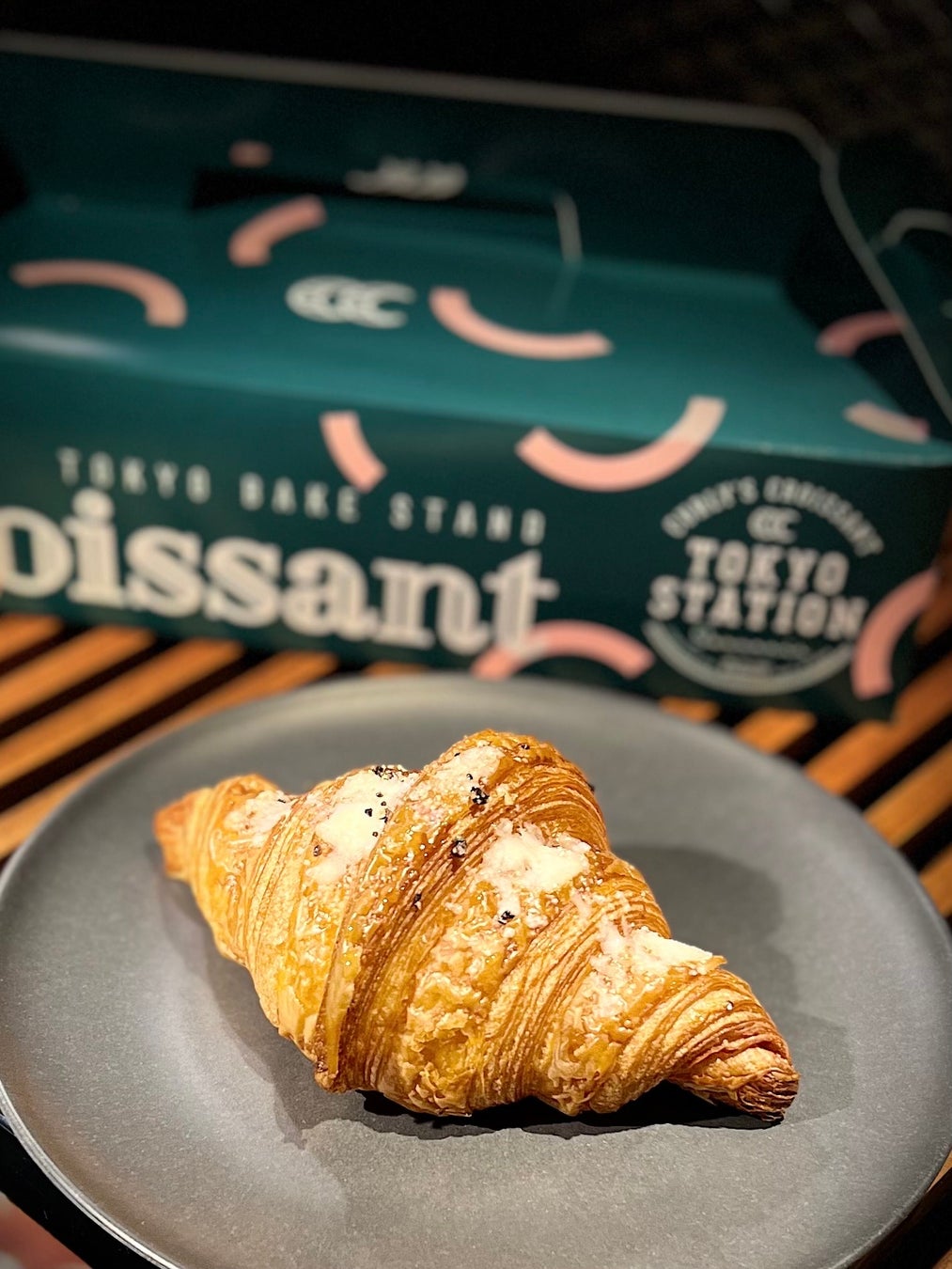催事初出店の東京駅構内にある<Curly’s Croissant TOKYO BAKE STAND>。クロワッサン専門店が手がけるトリュフ仕立てのクロワッサンは、北海道産の小麦粉とフランス産発酵バターの組み合わせにより、表面はパリッと、中はしっとりとした食感に。パルメザンチーズの焼き色と、黒トリュフオイルの芳醇な香りが食欲をそそります。食事にはもちろん、お酒のおともにも最適です。
