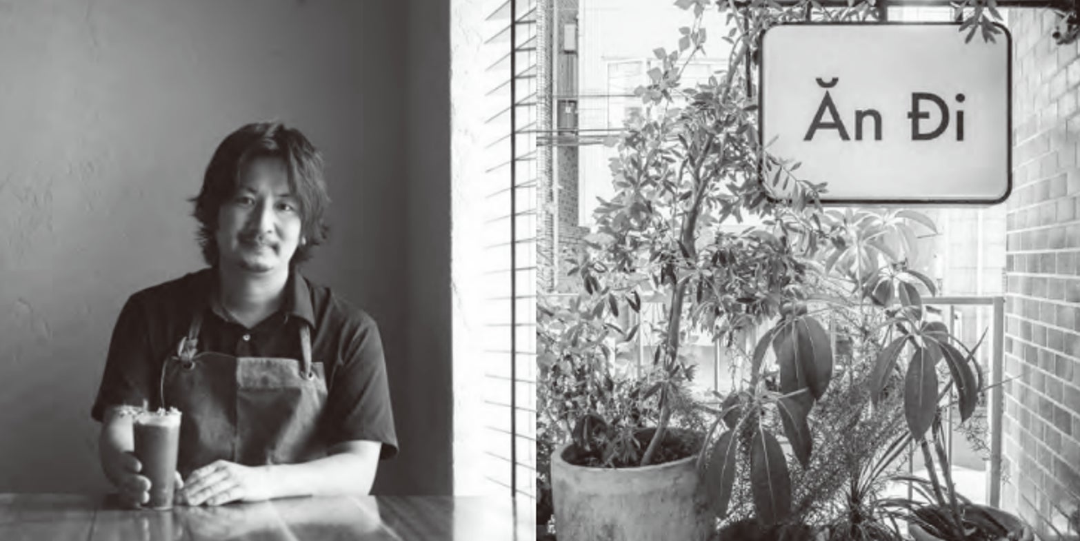 外苑前の静かな一画に佇む「An Di」は、日本から世界に発信する料理とペアリングを楽しめる店。店主・大越氏が、日本でこそ楽しめる新ジャンル“モダン・ベトナミーズ”を提案。フレンチシェフ・内藤氏とのタッグにより、ベトナム料理をベースとし、日本の四季を映す野菜や果物・ハーブ・和食材で彩る皿を供しています。その魅力をさらに増すのが、ボーダレスなお酒の楽しみ。