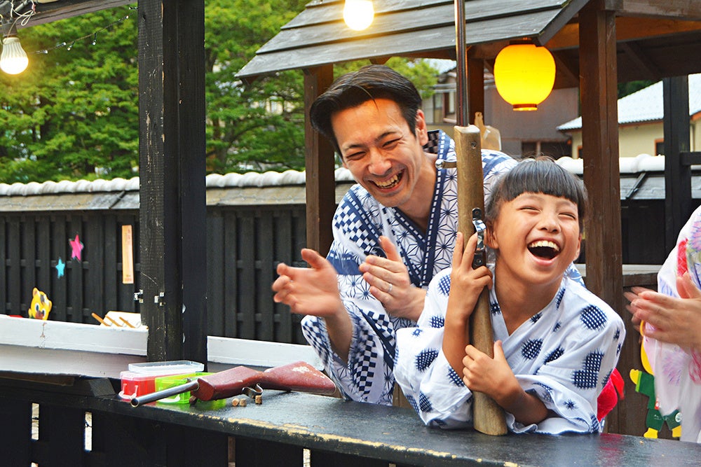 3歳~小学生のお子様には、手持ち花火と駄菓子券をプレゼント。また、昔懐かしい縁日遊び&かき氷屋台が並ぶ「こおろぎ横丁」では、輪投げ、射的、パットゴルフ、スマートボールなど、無料で楽しめる遊びが揃います。笑顔あふれるひとときを、ご堪能ください。