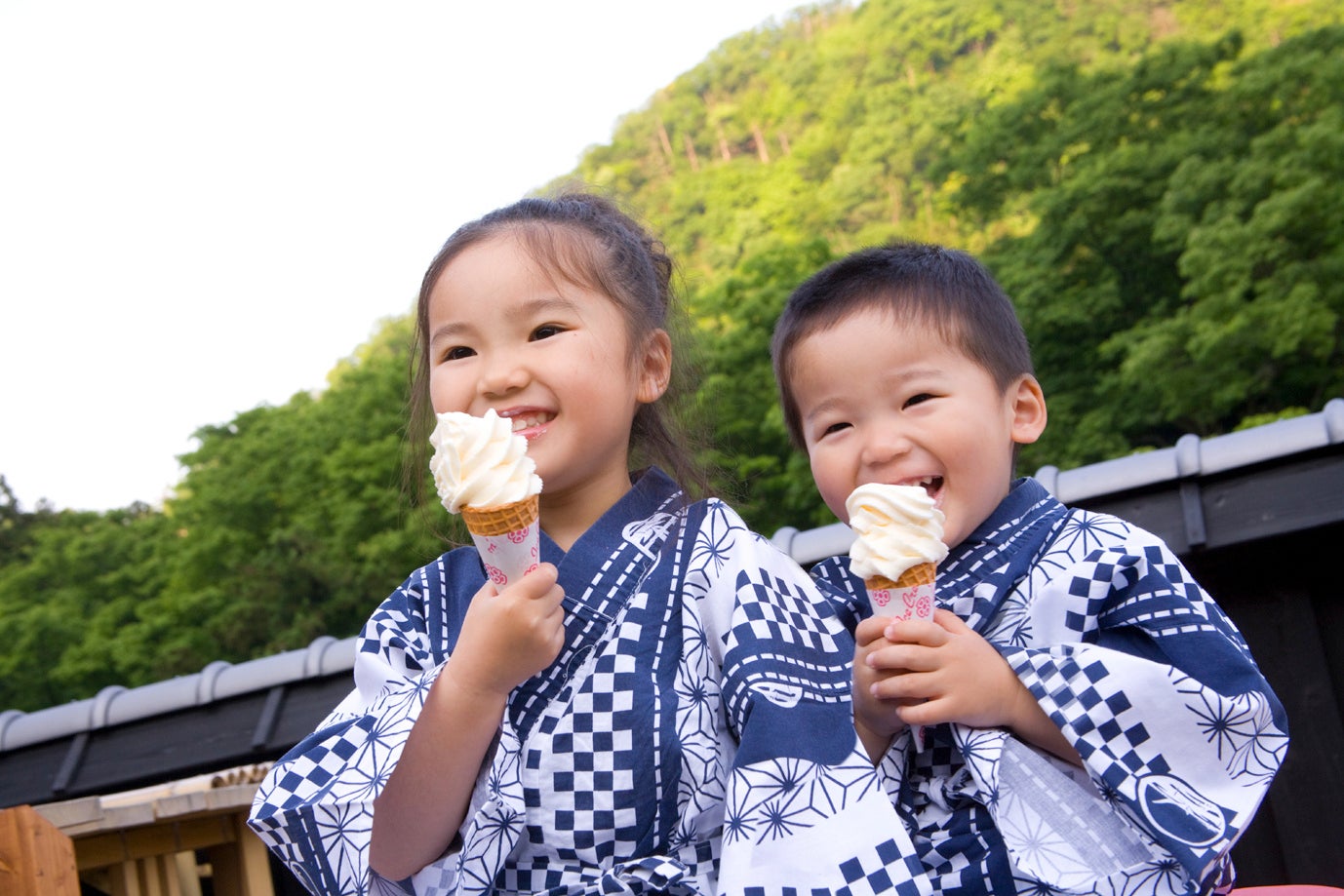 温泉街に沿って川が流れる美しい渓谷「鶴仙渓(かくせんけい)」で森林浴や渓流釣り、食べ歩きやアイスストリートも楽しい「ゆげ街道」、自然豊かな山中温泉で、家族そろって楽しい夏をお過ごしください。
