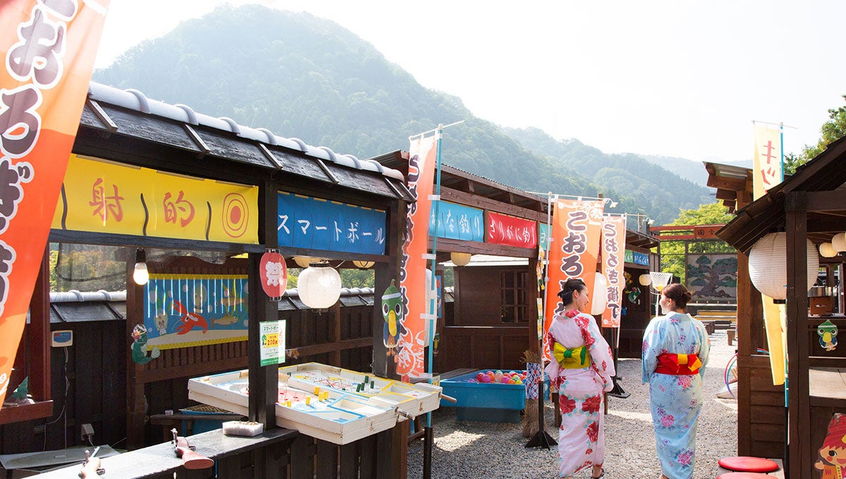 昔懐かしい屋台が並び、わた菓子やかき氷、縁日遊びが楽しめます。