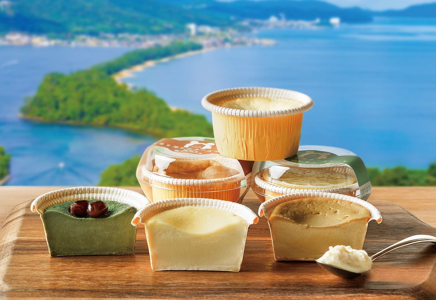 京都府の北部、日本海に面する宮津湾にある『天橋立』は、日本三景の一つで、何千年もの歳月をかけて自然がつくりだした神秘の地形です。カップチーズケーキ専門店「天橋立思ひ出チーズケーキ」は、そんな自然あふれる観光地、天橋立・宮津地域の新しい魅力の一つとなるようオープンいたしました。