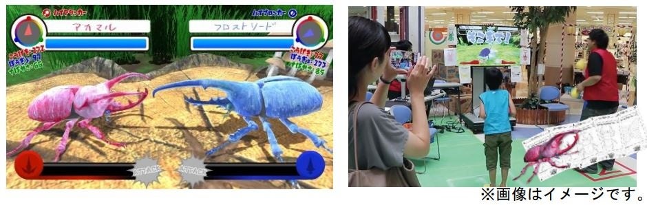 概 要:選べるキャラクターの「ぬり絵」を自分で塗って、スキャンするとモニターに映し出されます。(色の塗り方で虫の強さが変わる)専用コントローラーを振るとバトルが開始します。