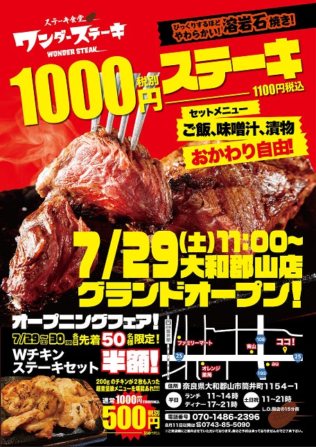 1000円でおなか一杯食べれるステーキ食堂ワンダーステーキ大和郡山店7月29日 グランドオープン!