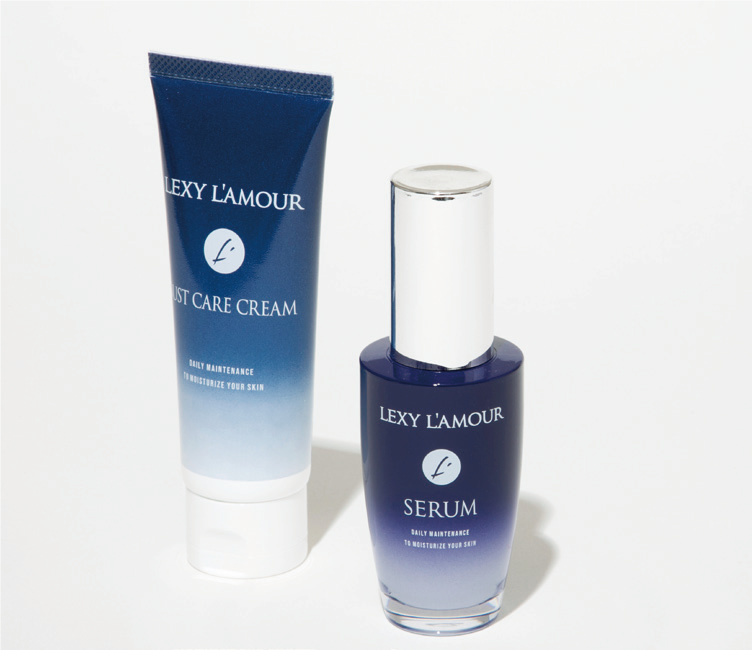 〈LEXY LAMOUR〉●左:バストケアクリーム(60g)7,150円 ●右:美容液(50ml)18,150円