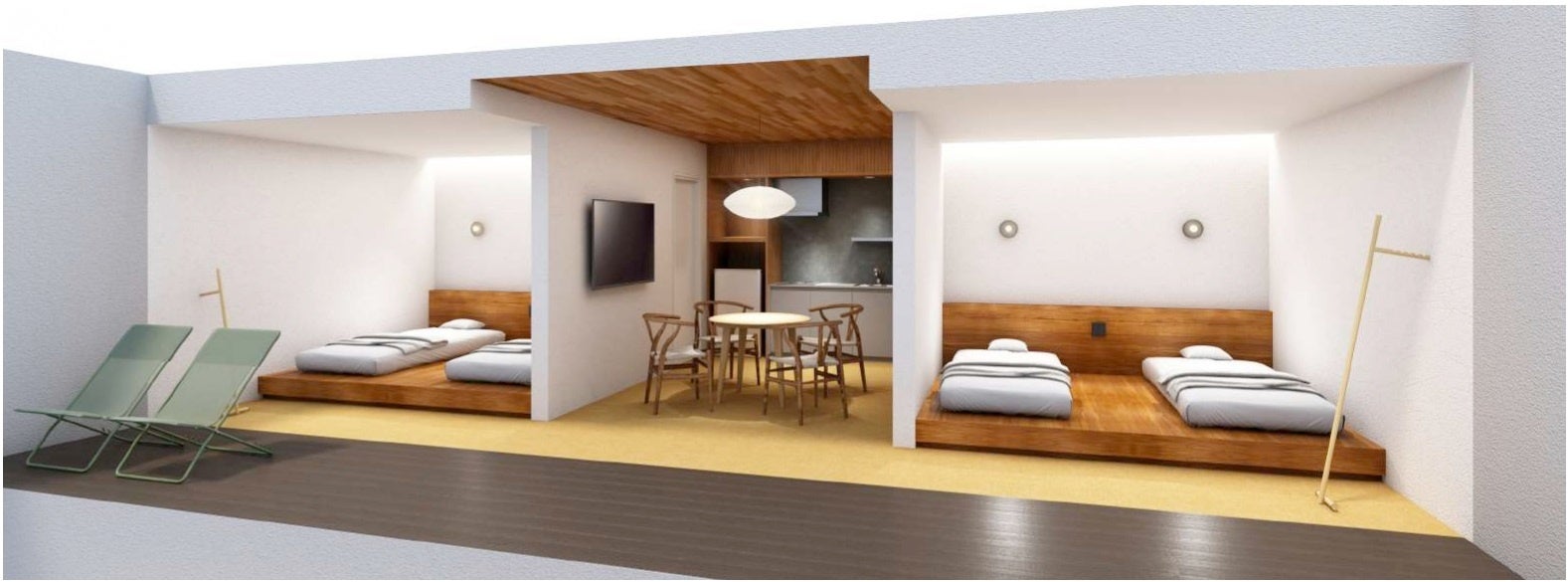 客室は、ツイン8部屋、フォース4部屋の合計12室からなり、全室スマートフォンやタブレットを使った無人チェックインシステムを導入した完全無人施設となっています。またフォースの室内ではスマートスピーカーを取り入れ、テレビや照明、空調機器などは、声で操作をすることができます。落ち着いた大人の雰囲気を醸し出す〈クールモダン〉、リゾート感を満喫できる〈アジアンテイスト〉の2タイプの客室からお選びいただけます。
