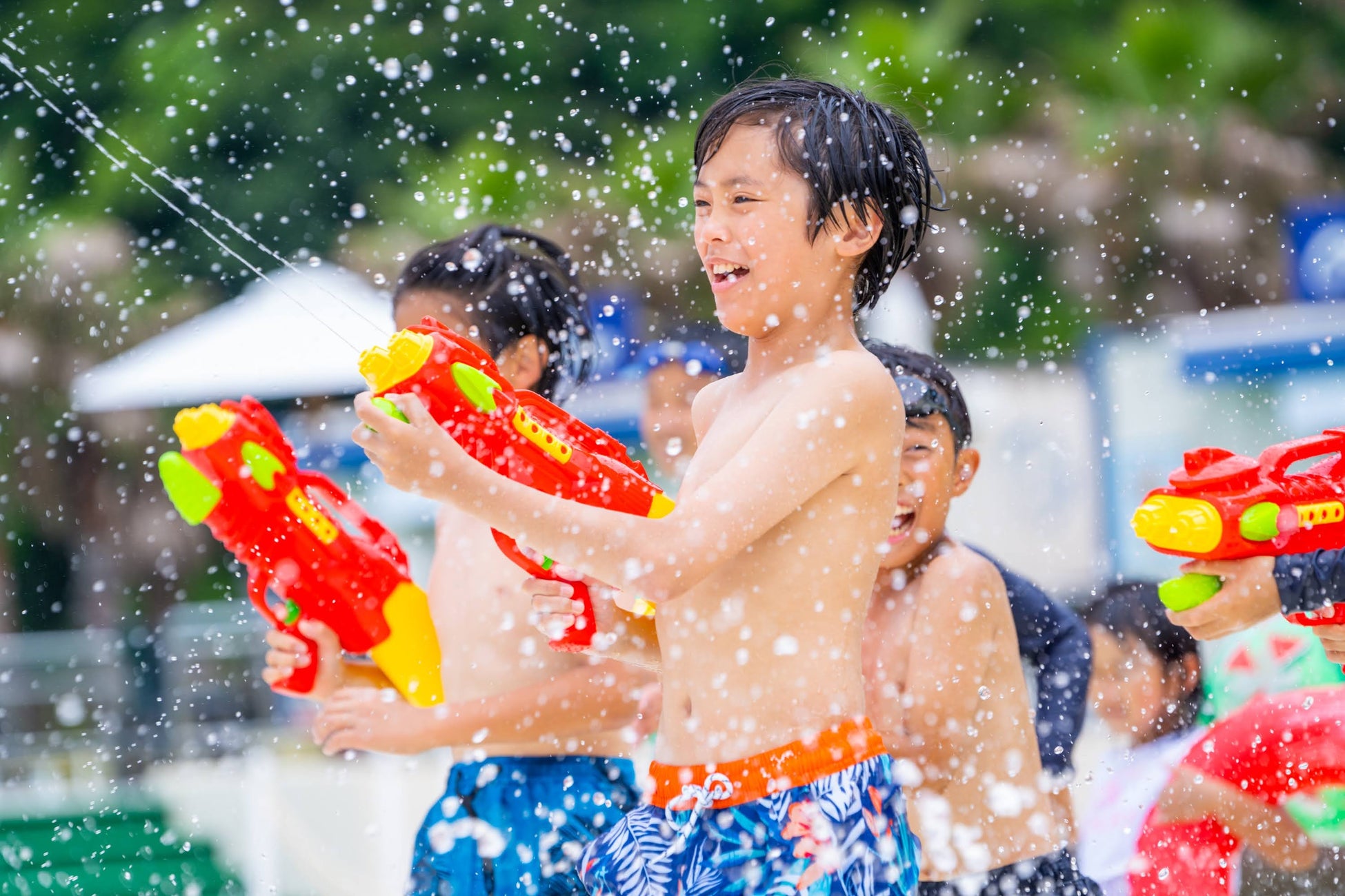 ⼤⾃然のプール「ウォーターフォート」では、2 トンもの⽔が降り注ぐ⽔の要塞エリアを⽔鉄砲撃ち放題のゾーンとして特別開放し、バケツに⼊った2トンの⽔を奪い合う「ネスタ ウォーターバトル」を開催いたします。ネスタオリジナルの⽔鉄砲を持って思いっきり⽔を掛け合う爽快感をお届けします。