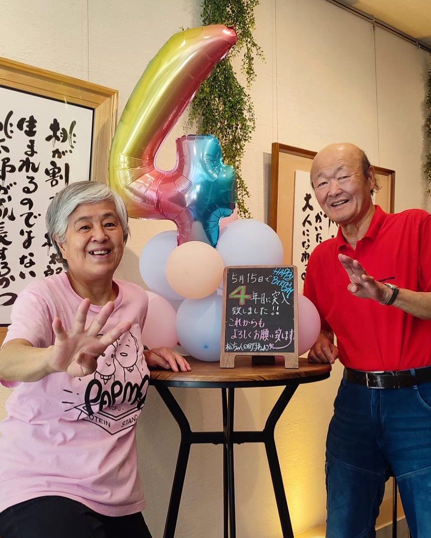 2020年5月にコロナ禍”真っ最中”に大阪・南堀江に豆腐スムージー PAPMA(パプマ)をオープンさせたシニア夫婦町子ちゃん 75歳(右)・松ちゃん 74歳(左)が、緊急事態宣言、時短営業、旅行者激減を乗り越えて、遂にFC 第1号店を2023年8月にオープン!