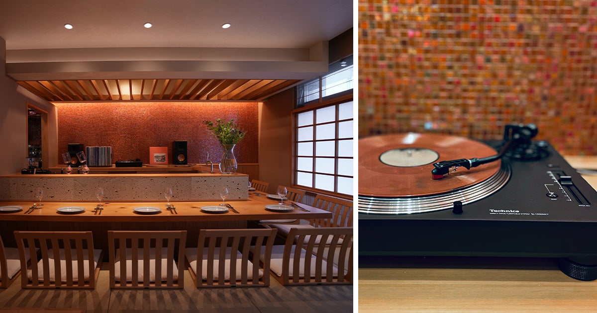 畳や障子、格子を使った温かみのある和風建築と近代的でミニマルな照明を掛け合わせたモダンでスタイリッシュな空間。レコードの音楽を聴きながら、サイフォンのコポコポと湧き上がるお湯やフラスコにコーヒーが溜まっていく過程を見て楽しんでいただけるようにカウンター席もご用意。