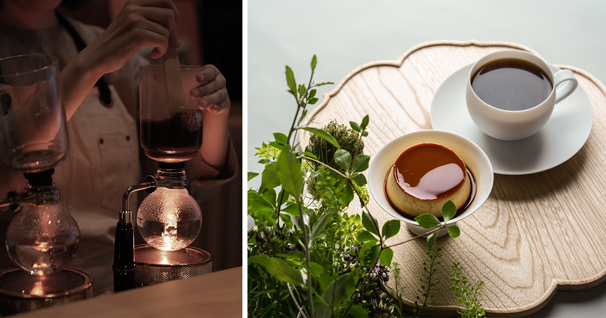 カフェの時間帯ではサイフォンコーヒーや和紅茶、緑茶、デザートを提供します。