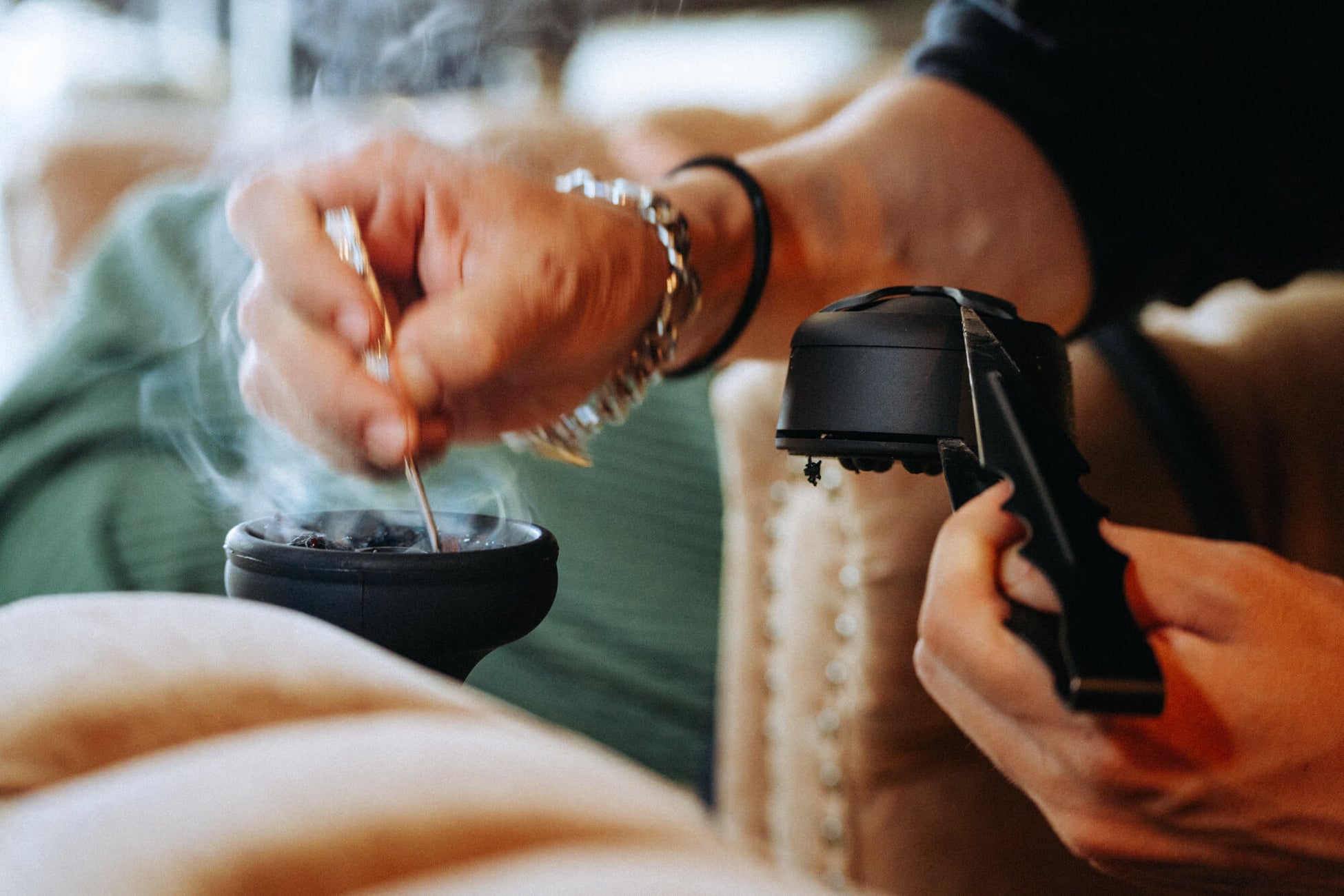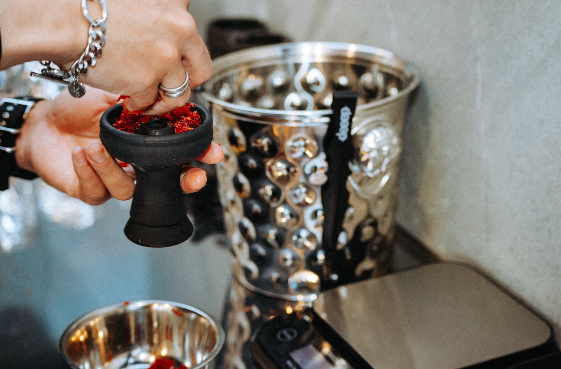「シーシャ」は、水タバコとも呼ばれていますが、シーシャ台の上に、「フレーバー」と呼ばれる、たばこの葉を乗せて、炭で熱することで出る煙を、水に潜らせて吸うことを指します。