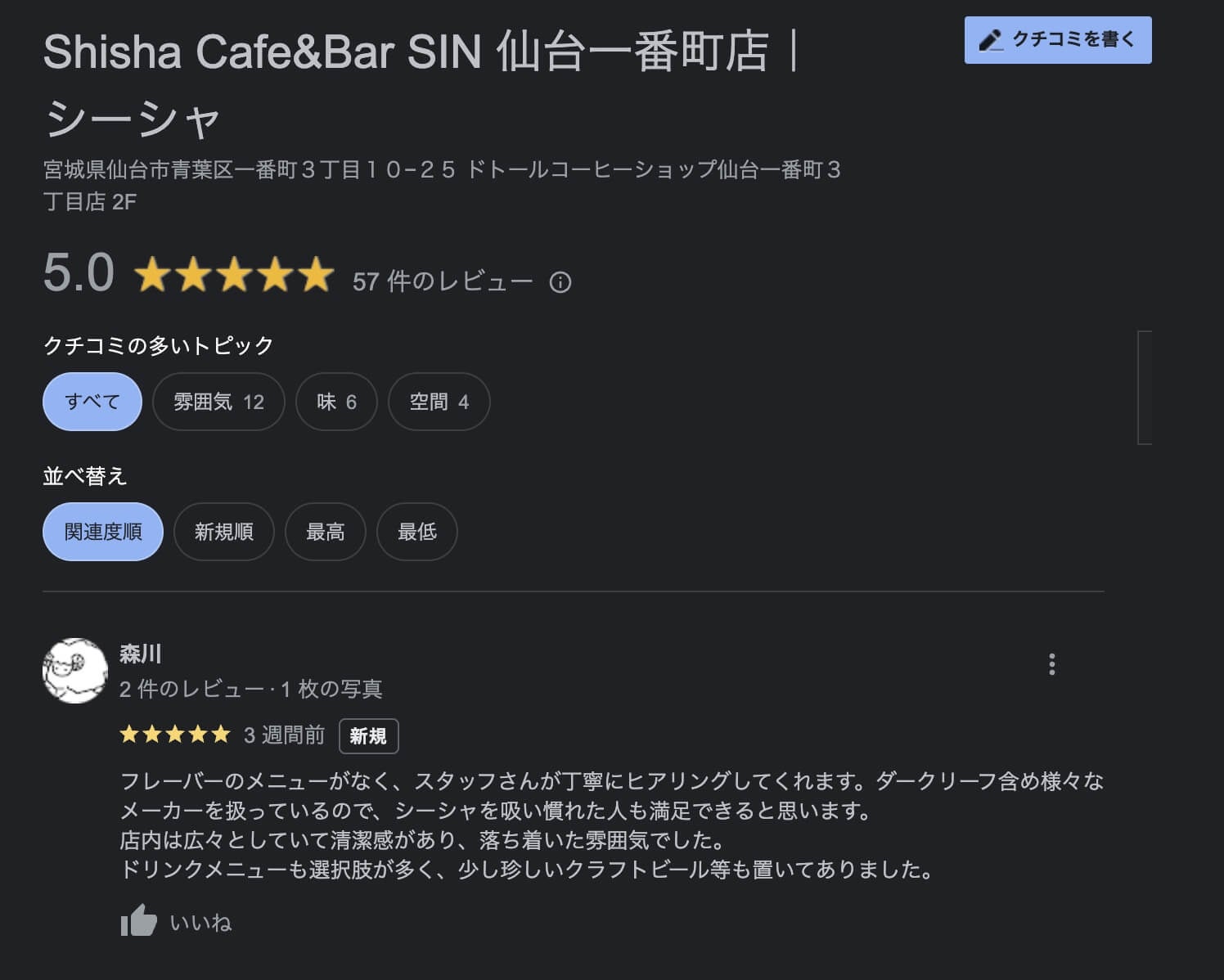 ■Shisha Cafe & Bar SIN 仙台一番町店(仙台シーシャカフェSIN)は実際おすすめなの?Googleの口コミと評価をご紹介